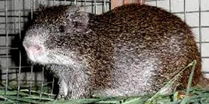 Grasscutter or Greater Cane Rat (Thryonomys swinderianus) is one of two species of cane rats. Grasscutters occur in grassland or in wooded savanna throughout the humid and sub humid areas of Africa south of the Sahara. They often live in forest-savanna habitats where grass is present. Cane rats can grow to nearly 2 ft (0.61 m) in length and weigh a little less than 8.6 kg. It has rounded ears, a short nose, and coarse bristly hair. Its forefeet are smaller than its hind feet, each with three toes.